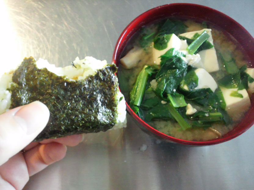 おにぎり 小松菜と三つ葉と豆腐のおみおつけ ・・・・・・,’’’’’’’