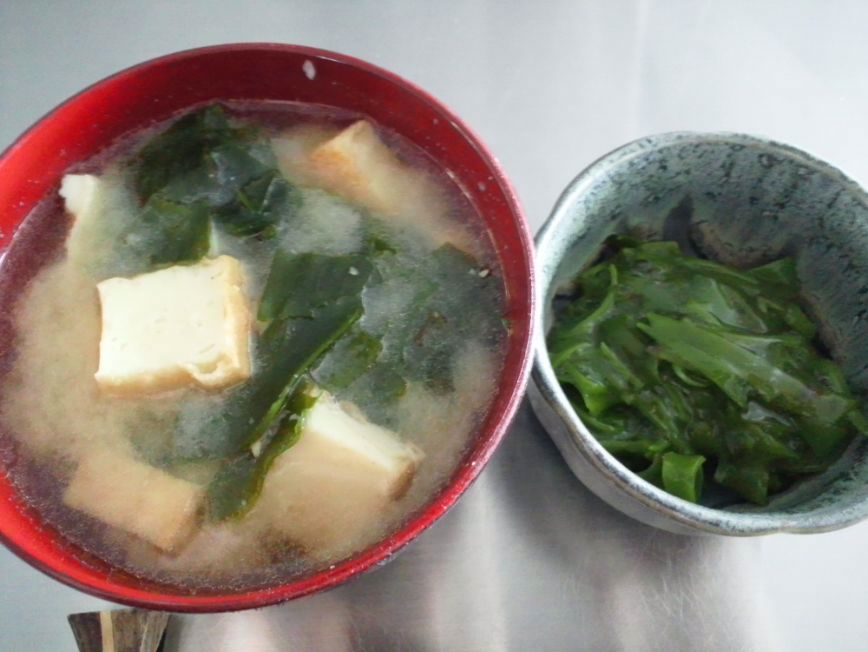 若芽と厚揚げのおみおつけ メカブ ・・・・・・:,’
