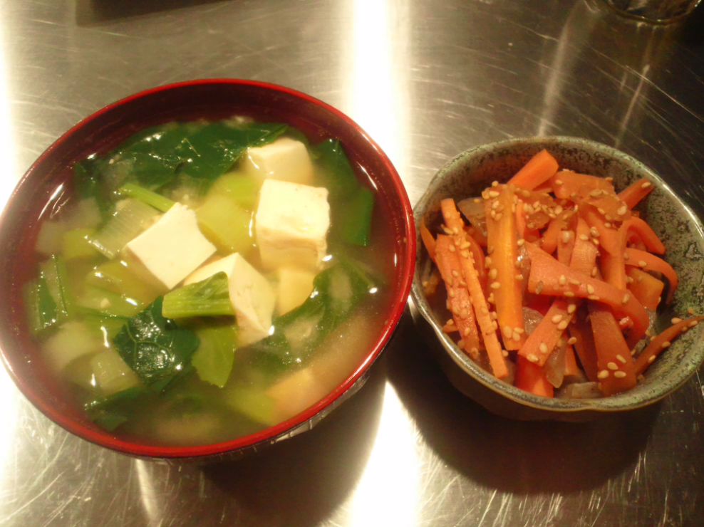 小松菜のおみおつけ 人参金平 ・・・・・・,’’’’’’’’