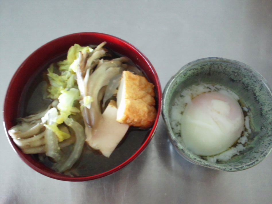 舞茸のおみおつけ 温度玉子