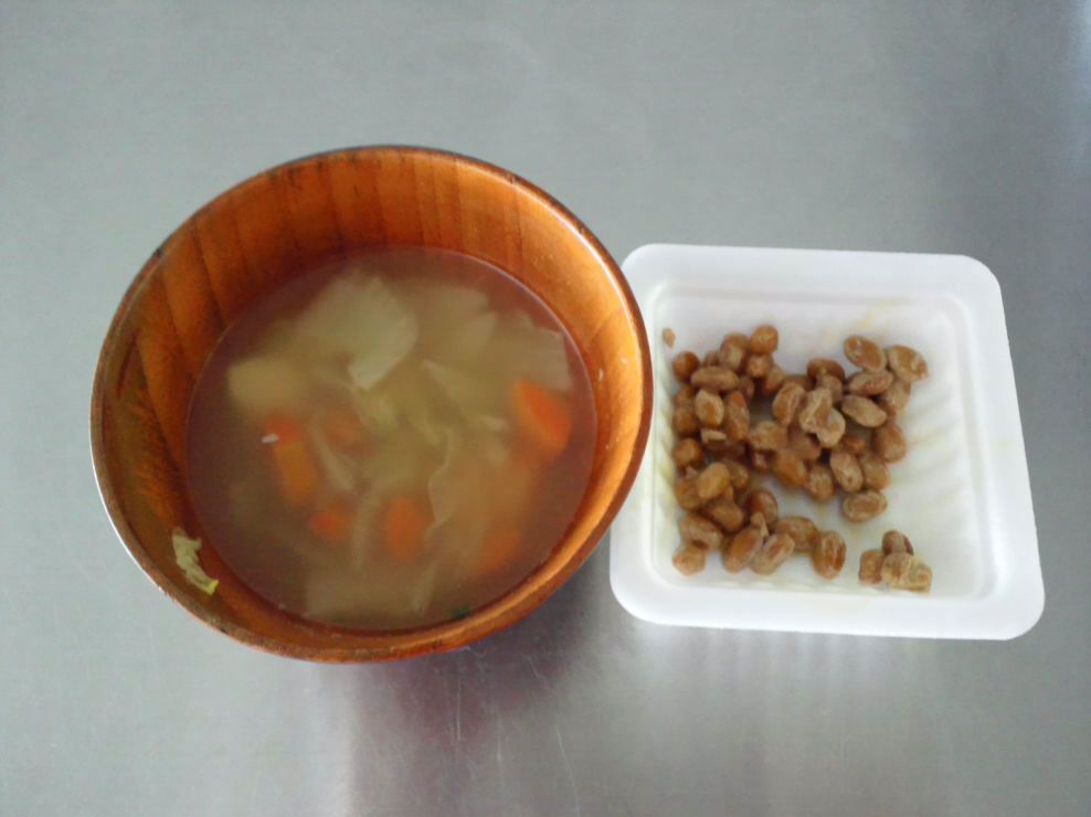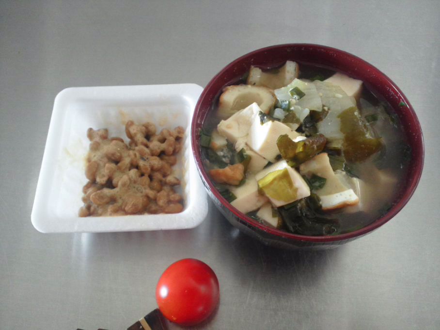 納豆半分 ミニトマト1個 おみおつけ ・・・・・:::::::::,’’’’’’’